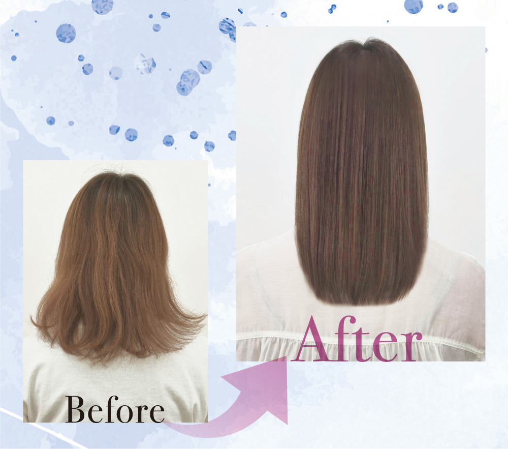 くせ毛にダメージが重なって広がってしまった髪を内側から整え、まとまりとツヤのある髪に。