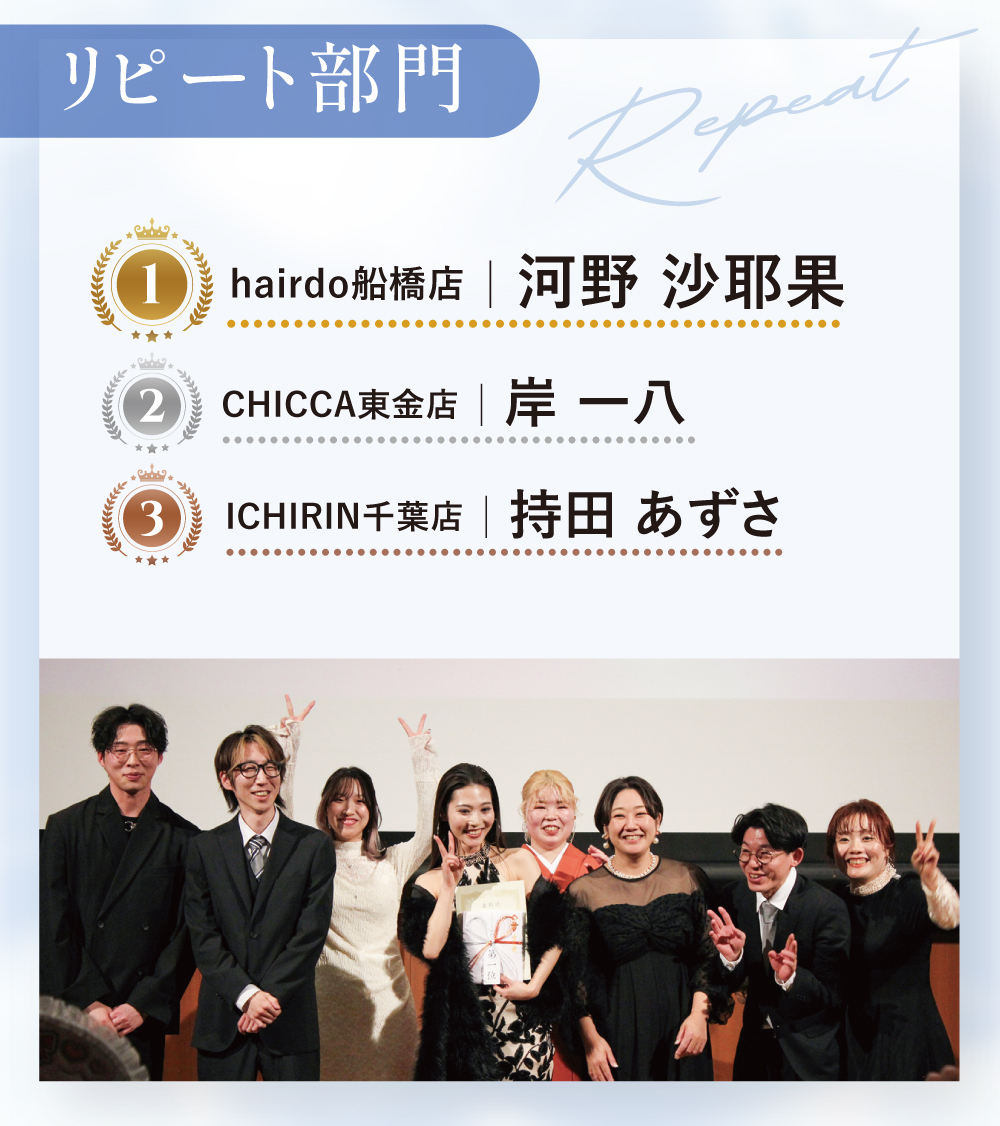 「PEEK-A-BOO」カット講師・グループ美容師・一般女性で構成された審査団による、ハイレベルな審査に合格した作品が多いスタイリスト
