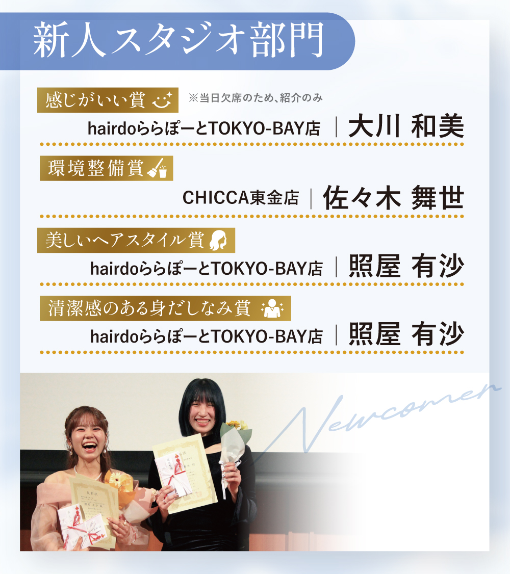 新入社員を対象に、スタジオ講習にて4項目それぞれでも「いいね!」の評価をもらった新入社員に贈られる賞